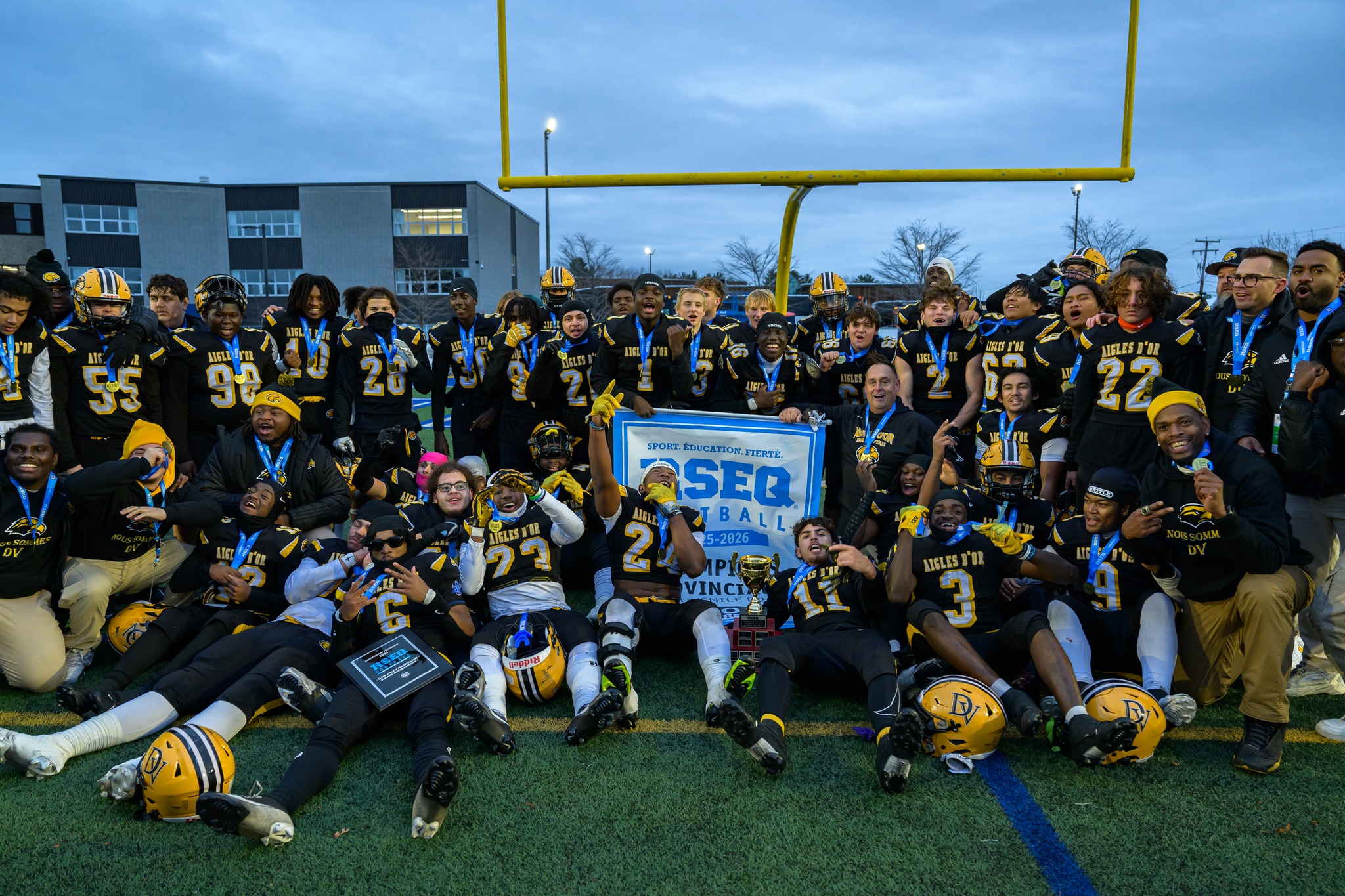 Trois-Rivières, 14 novembre 2025 – Les Aigles d’Or de l’École secondaire Dalbé-Viau ont disposé aisément des Dragons du Collège St-Jean-Vianney au compte de 49-14 en…
